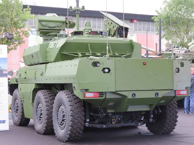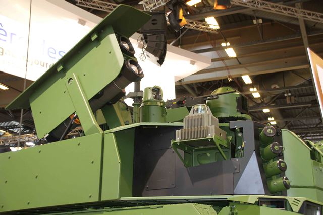 Los dos prototipos del futuro blindado de exploración contratados por el Armee de Terre para sus unidades de Caballería se exponen estos días en París, uno en el stand oficial de esa institución y otro en el de su fabricante. Este último es la compañía Nexter Systems, firma que se tomó muy a pecho, con un nutrido grupo de vigilantes de seguridad, el que las personas que se aproximaban a su recinto vallado exhibiesen o apuntasen sus cámaras a los vehículos que promocionaba para evitar que se tomasen detalles de algunos de sus elementos.