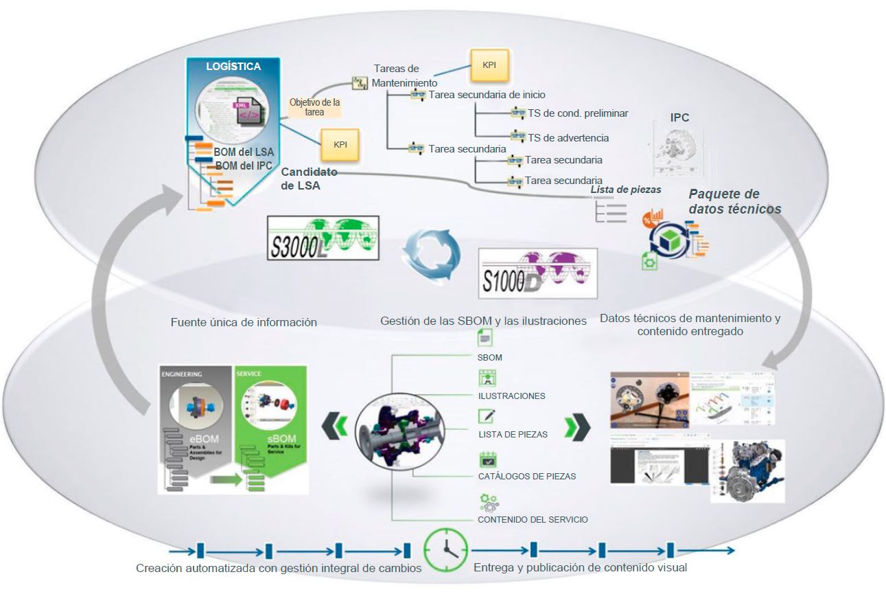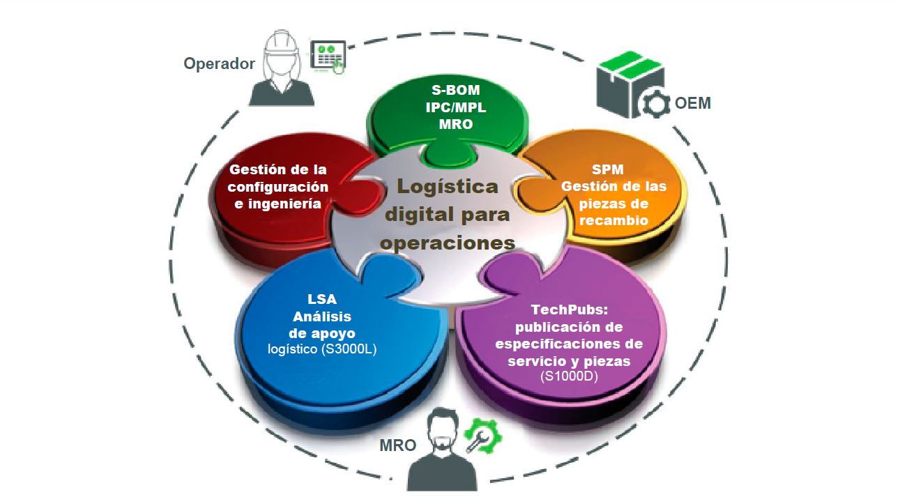Con ello, las empresas del sector defensa y aeroespacial, los fabricantes y proveedores de servicios de mantenimiento pueden adoptar e implementar operaciones digitales en servicio, apoyo logístico integrado y capacidades de mantenimiento sin papel de forma gradual, paso a paso, además de sus procesos y sistemas existentes, transformándolos en un hilo digital operativo.