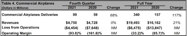 Para la empresa el año 2021 ha supuesto una reconstrucción, superando obstáculos y alcanzando hitos clave en las carteras de aviación comercial, defensa y servicios. Aumentaron la producción y las entregas del 737 MAX, y consiguiendo que este modelo volviera al servicio con seguridad en casi todos los mercados del mundo. A medida que la recuperación del mercado de la aviación comercial ganaba velocidad, también registró un sólido número de pedidos comerciales, incluida una cifra récord de ventas de aviones de carga.