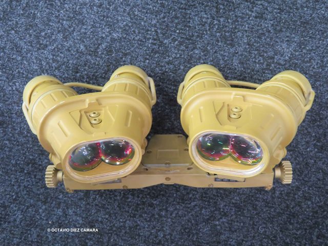 Las gafas de visión nocturna Maximus tienen una configuración positiva en su peso, el más bajo de los de su categoría, y en lo que a reparto de masas se refiere, pues el módulo con dos tubos dobles se sitúa en la parte frontal del casco y el que acoge las baterías en la trasera, posición de mejor balance operativo. El fabricante ha diseñado la disposición de los tubos que acogen los captadores nocturnos, que por cierto son de la versión más reciente y eficaz de Photonics con imagen de alta definición en blanco y negro, de forma que el que emplea este equipo PNVG tiene una visión sin espacios muertos de lo que acontece delante suyo.