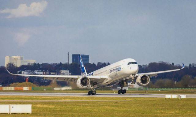 Fotografía: El Airbus A350 de pruebas de la compañía en Hamburgo (Airbus)