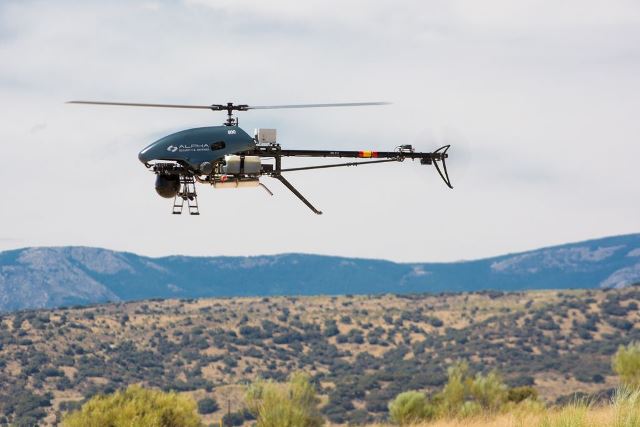 Adquirido por la Dirección General de Armamento y Material (DGAM) del Ministerio de Defensa español en 2018 para tareas de evaluación operativa y experimentación, el Alpha 800 es un helicóptero de pequeño tamaño, con un peso de 14 kg. está propulsado por un motor de gasolina, tiene una autonomía de 3 horas, puede portar una carga útil de 3 kg. y tiene un alcance de hasta 30 km. Cuenta con un piloto automático y GPS, ambos de tipo militar y ha sido evaluado para la detección de artefactos sin estallar (Unexploded Ordnance o UXO) y es utilizado en más de cinco países.