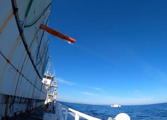 Disparado a baja cota desde un helicóptero Dauphin en el mismo polígono de pruebas francés, el 20 de febrero, voló a ras del mar antes de atacar a su objetivo. En la fase terminal, la tripulación afinó el punto de impacto con imágenes en el helicóptero de data link desde el buscador infrarrojo del misil.