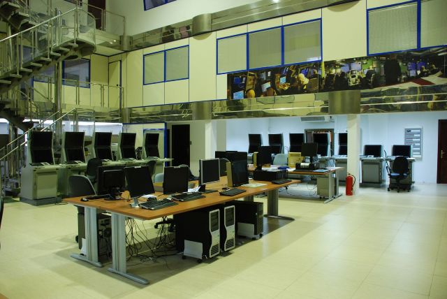 Es un simulador formado por dos consolas y seis pantallas en las que se puede recrear una navegación que permite experimentar como se dirige un barco desde el puente, haciendo uso incluso de cartas de navegación. (José Mª Navarro García)
