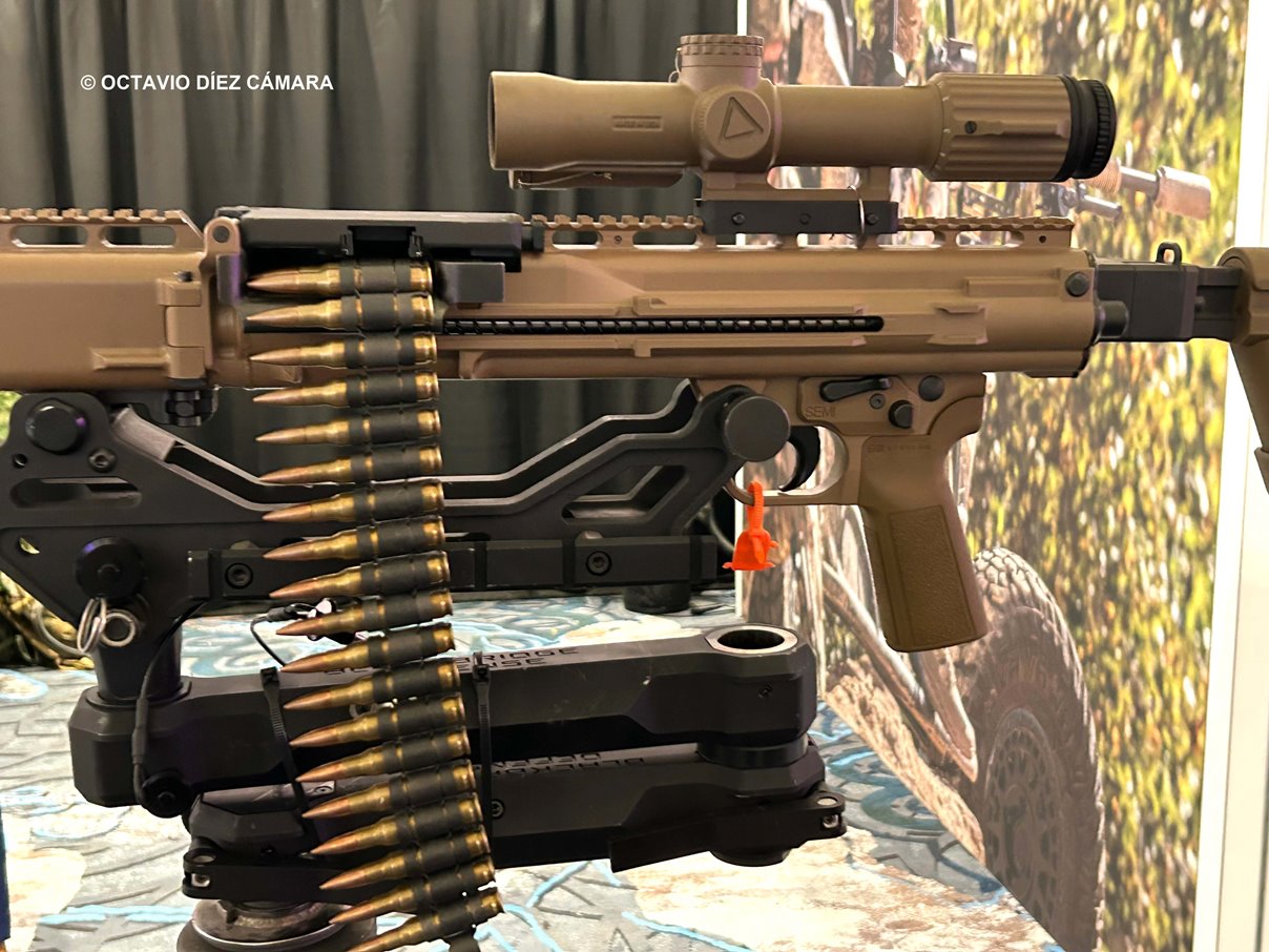 A ambos colectivos les habrá interesado el hecho de que el concepto de esta ametralladora apuesta por una simplicidad y duración nada clásicas. Todos los elementos que se incluyen en ella inciden en obtener las mejores prestaciones del cartucho del .338 Norma Magnum que dispara gracias a cintas de alimentación de eslabones desintegrables que se pueden situar en el costado izquierdo o derecho y facilitan conseguir tanto acciones de fuego semiautomático muy preciso como ráfagas a ritmos de hasta 650 disparos por minuto.
