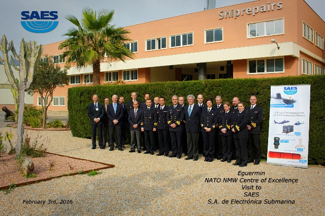 Una delegación de EGUERMIN ha visitado las oficinas centrales de SAES (Sociedad Anónima de electrónica Submarina). EGUERMIN se creó en 1965 como una Escuela de Guerra de Minas Belga-Holandesa y, desde el año 2006, se convirtió en el Centro de Excelencia de la Guerra de Minas de la OTAN (NMW COE – Naval Mine Warfare Centre of Excellence).