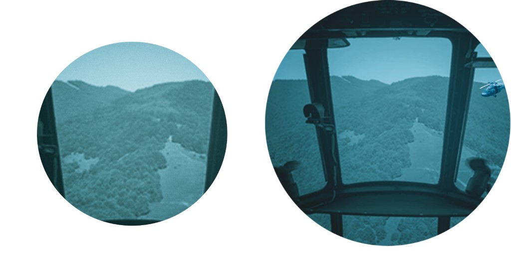 Visión de 40º standard vs. Visión de Campo Ampliado de 52º de NVLS. Aplicación aérea. (NVLS)