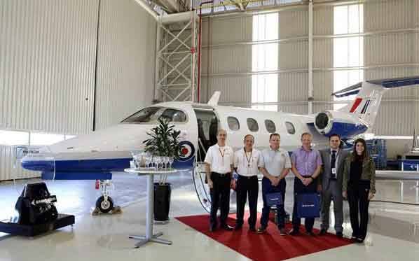 Embraer entregó el primer birreactor Ejecutivo ligero Phenom 100 a Affinity Flight Training Services, elegido para proporcionar entrenamiento a pilotos en polimotores a las Fuerzas Armadas del Reino Unido como parte del programa UKMFTS. (United Kingdom Military Flying Training System) del Ministerio de Defensa. Affinity adquirió 5 ejemplares, con opción para uno más, y servicios de soporte para la parte de ala fija de este programa, que tiene como objetivo sustituir el adiestramiento elemental, polimotor y básico con una solución integrada avanzada, con aeronaves, dispositivos en tierra y cursos diseñados por Ascent Flight Training, el proveedor de servicios de formación del UKMFTS, tras lo cual pasarán a las unidades de conversión operacional. En 2014, esta firma eligió a Ascent Flight Training para suministrar y mantener las aeronaves.