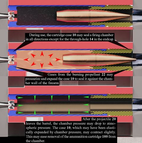 El sellado de la bala tras el disparo se produce extruyendo la bala. La bala tiene un calibre levemente superior al calibre nominal del cartucho de manera que, al penetrar dentro del ánima del cañón desde la recámara y atravesando el cono de forzamiento, se comprime tanto la camisa de latón como el núcleo de plomo, penetrando en los surcos hasta superar el calibre nominal y alcanzar dentro de tolerancias muy reducidas la distancia entre surcos. Por ejemplo, el calibre nominal de nuestro 7,62x51 es 7,62 mm, pero la distancia entre surcos es de 7,82 mm.