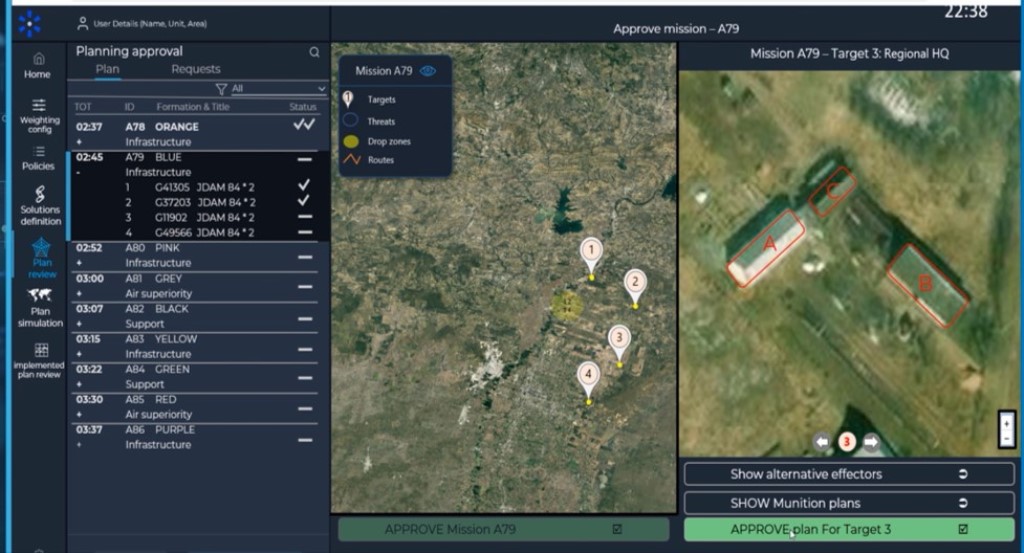 FORCE: permite la construcción de planes de ataque al alinear efectivamente objetivos con efectores, como misiles, para múltiples misiones. FORCE mejora los efectos acumulativos en el enemigo a través de una sincronización eficiente y una planificación dinámica influenciada por la inteligencia, maximizando el impacto en objetivos de alta prioridad y reasignando recursos según sea necesario. El sistema optimiza la toma de decisiones, lo que permite a los planificadores humanos centrarse en la esencia central del ataque y aumentar los efectos en plazos reducidos.