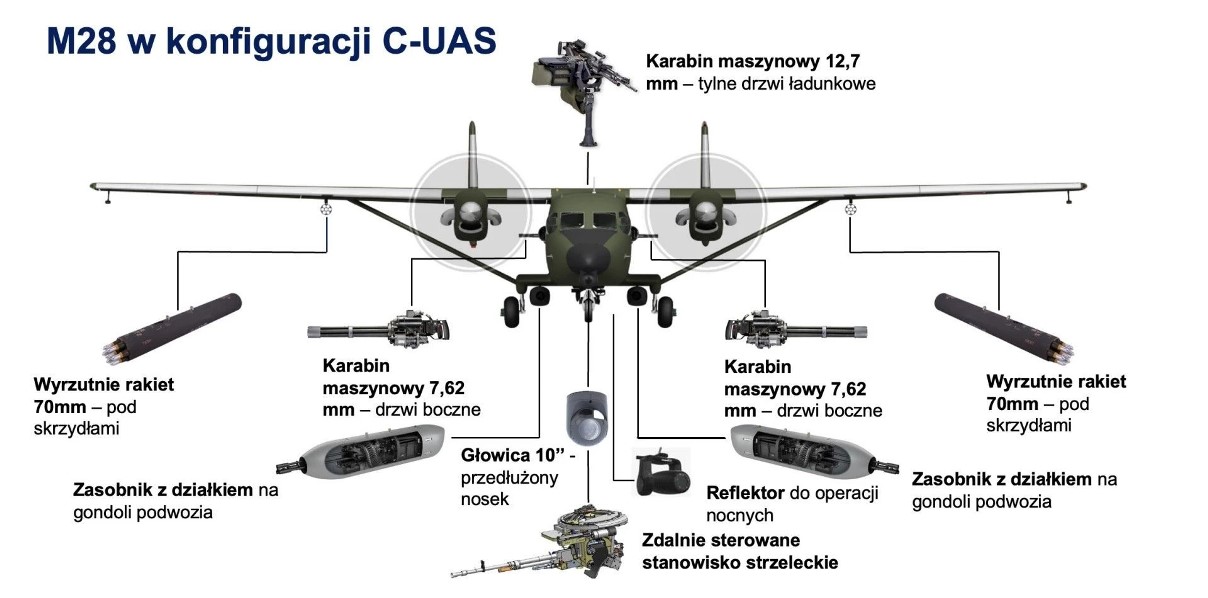 Defence24 detalla que la industria propone emplear el M28 (conocido como Bryza en Polonia) como plataforma de combate contra drones, aprovechando su uso actual en misiones de transporte, vigilancia de fronteras y patrulla marítima, incluso en operaciones de la OTAN en el Báltico y el Mediterráneo. PZL Mielec presentó recientemente esta configuración durante una conferencia sobre la evolución del campo de batalla organizada por la Academia de las Fuerzas Terrestres, mostrando cómo el avión puede integrarse en un sistema más amplio de defensa antidrón.
