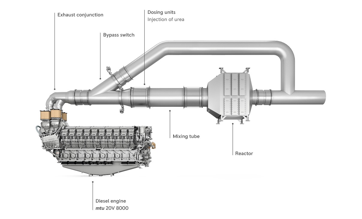 El cambio más importante en comparación con los motores anteriores para IMO II es el nuevo postratamiento de gases de escape MTU, cuyo componente principal es un sistema SCR en el que las emisiones de óxido de nitrógeno se reducen en un 75 por ciento en comparación con los límites de IMO II.