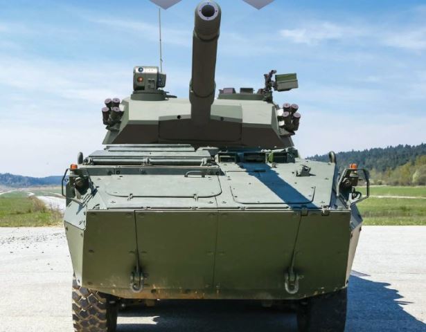 El Sabrah sobre Pandur abriendo fuego. La silueta recuerda poderosamente a una torre Hitfact de Leonardo. (Elbit Systems)