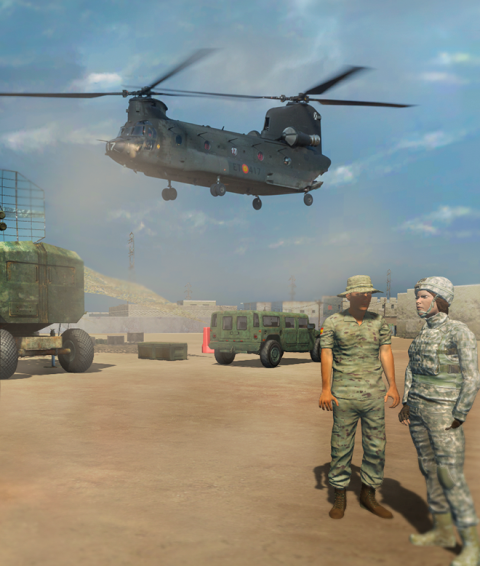 En este punto trasladar algunas tecnologías utilizadas en los videojuegos serios o serious games a los simuladores permite mejorar la experiencia del soldado y acelerar su aprendizaje. Recreando siempre situaciones reales, se sitúa al alumno ante el reto de responder a un desafío táctico o interactuar con otros personajes.