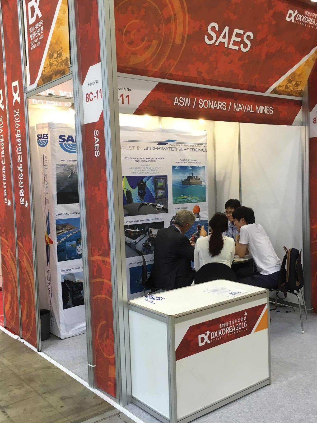 SAES ha participado en la 2ª edición de DX Korea para promocionar sus nuevas soluciones en el Noreste de Asia, región donde las nuevas soluciones para protección y seguridad de la costa incrementan su demanda. La empresa líder en España en acústica y electrónica submarina, ha mantenido reuniones con las autoridades del país involucradas en el sector naval, y más específicamente el submarino, para ofrecer la más avanzada tecnología en las áreas de: Sonar y Sistemas embarcados, Guerra antisubmarina (ASW), Procesado de Sonoboyas, Inteligencia de firmas, Minas Navales Multi-influencia, Seguridad Marítima y Protección de Costas, simulación y entrenamiento entre otros servicios.