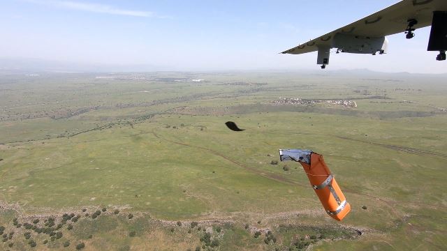 La balsa comienza a inflarse tras el lanzamiento (Elbit Systems)