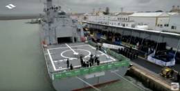 Ceremonia de entrega de la fragata Al Jubail, el primero de los buques construidos por Navantia para la Real Marina Saudí, que tuvo lugar el 31 de marzo en instalaciones de la Armada en San Fernando, Cádiz.