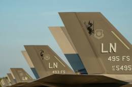A la RAF (Royal Air Force) Lakenheath (en el centro de Inglaterra) han llegado dos cazabombarderos F-35A Lightning II portando las insignias que atestiguan que serán los aviones de mando de los Escuadrones de la Fuerza Aérea de Estados Unidos que operaran de forma permanente en Europa.