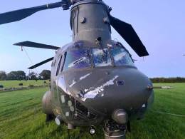 Un helicóptero de carga pesada Boeing CH-47 o Chinook HC.6A de la RAF (Royal Air Force) realizó un aterrizaje de emergencia en unos terrenos de cultivo de Carmarthenshire (Gales). La aeronave, con matrícula ZA683, había chocado antes con unos cables de alta tensión, uno de los grandes peligros de...