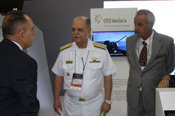 Así para las fragatas PROSUPER ofrece su pieza de 127 m/m Vulcano; para las corbetas Tamandare y los patrulleros NAPA 1800 la eficaz y muy extendida pieza de 76 m/m UR; y finalmente paro los patrulleros NAPA 500 el cañón ligero de 40 m/m Forty Light. Cuenta en este marco con las alianzas suscritas con las empresas cariocas Engeprom e Inbel, destacando que ésta última ensambla y prueba las piezas de 76 m/m UR en la denominada Fabrica de Juiz de Fora (FJF), sita en la localidad del mismo nombre, que la firma italiana ha vendido a la Marinha do Brasil en contratos anteriores. Pudimos ver en el stand de la firma italiana al almirante Luiz Guilherme Sá de Gusmão, que es el actual director general de Material de la Marinha do Brasil, o lo que es lo mismo, el máximo responsable de los programas de adquisición de esta fuerza naval.