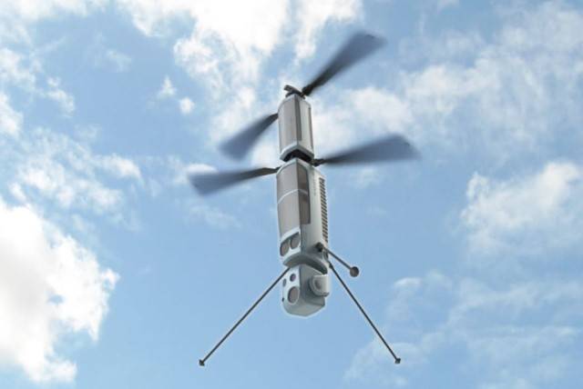 Se ha diseñado un sistema de los denominados “loitering” que combina características de un UAV y un proyectil guiado para unidades a pie de infantería o de operaciones especiales. Está formado por un drone de escasos 40 cm. de largo y un diámetro de fuselaje de 8 cm. con motores eléctricos que propulsan dos rotores contrarotantes de 60 cm. con los que operar a altitudes de 500 metros en entorno urbano o 1.500 en campo abierto. Puede estar volando 15 minutos y hacerlo incluso con vientos de 37 km/h.