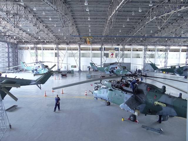 Russian Helicopters, del grupo Rostec, ya ha inaugurado su centro de servicios de reparación y mantenimiento técnico para helicópteros Mi-35M en la ciudad de Belo Horizonte. Según la previsión de la empresa, la primera aeronave será revisada este año. El anuncio fue hecho por el vice director de la empresa, Igor Chechikov. En 2014, la Fuerza Aérea Brasileña (FAB) adquirió 12 helicópteros Mi-35M, que son utilizados por el Escuadrón Poti (2º / 8º GAV), con sede en Porto Velho (Rondonia). "El servicio de mantenimiento técnico en Brasil, en la ciudad de Belo Horizonte, está abierto. Está certificado por las autoridades de aviación brasileñas, el organismo certificador ", declaró Chechikov. El centro fue creado como parte de un programa de compensación (offsets) del contrato original de suministro de los Mi-35M, localmente denominados AH-2 Sabre.