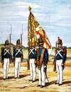 Pasa su primera revista el nuevo Tercio en la villa de Salinas el día 16 de mayo de 1703, armado y equipado a costa de la provincia, luciendo casaca azul, botonadura de cobre con ojaladura de seda azul, chupa y calzón de cordellate fino encarnado, medias de estambre azul con larretieras encarnadas con hebilla, sombrero guarnecido de galón de oro falso, toquilla de cordón de estambre encarnado mezclado con azul, al hombro derecho lazo de cinta de estambre de los mismos colores, corbata de...