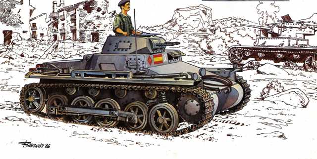 El 12 de octubre de 1936 llegan a Cáceres la primera partida de carros alemanes. Se trataba de 32 Panzer Ausf A con los que se forman las dos primeras compañías adscritas al R. 1. Argel núm. 27. El 15 de diciembre se crea en Cubas (Madrid) una tercera compañía. Nuevos envíos permiten cubrir bajas y crear en agosto de 1937 la 4ª Cia. de Negrillos, nombre que se le aplicó en España al Panzer 1 por estar pintados en gris oscuro. Para mantener este nivel e ir reponiendo las bajas, Alemania suministró centenar y medio, aproximadamente de los modelos Ausf A y Ausf B así como de la versión de mando. Durante el conflicto se perdieron alrededor de ochenta carros.