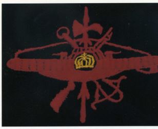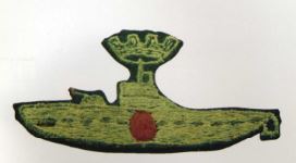 Foto núm. 2. BANDO REPUBLICANO. Ante la falta de mandos para los submarinos, el Gobierno de la República hizo gestiones con la URSS, que envió algunos miembros de su Armada. Este fue el distintivo que usaron a bordo de los submarinos de la República Española, pero tan sólo durante el año 1938.