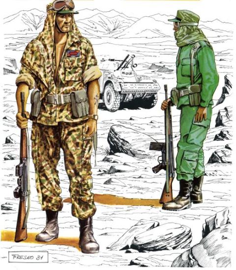Las figuras representan a un cabo de la X Bandera con el uniforme mimetizado que empezó a ser utilizado a principios de 1975 y un legionario con el uniforme de 1973.