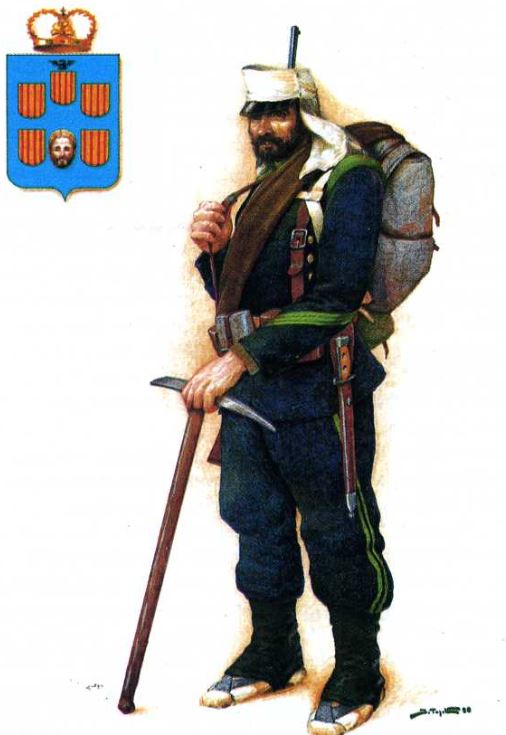 Voluntario de Aragón, de Infantería Ligera. Primera Unidad de Cazadores de Montaña de España, creada en el año 1762
