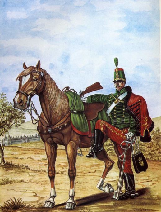 La joven reina tuvo que enfrentarse a serios contratiempos como el saqueo de Cádiz en agosto por una escuadra anglo-holandesa mandada por el almirante Rooke. Después, la huida a Portugal del almirante de Castilla, arrastrando consigo toda una pléyade de nobles desafectos. En tal barahunda de sucesos llegó a la Corte, en el mes de octubre, procedente de Andalucía, un aristócrata adicto a la Casa de Borbón llamado don Baltasar de Moscoso y Montemayor, conde de las Torres. Venía con el sano propósito de crear un cuerpo montado a sus expensas, vista la necesidad de incrementar el por entonces menguado Ejército. No debió encontrar fácil acceso para ello, ya que el buen Conde quemó cuatro meses entre trámites y búsqueda de oficiales dando tiempo a que el Monarca, acusando el esfuerzo de las pasadas batallas de Lúzzara y Santa Vittoria, regresara a Madrid a mediados del mes de enero de 1703 enfermo. No obstante, el Rey atendió cumplidamente al Conde y éste salió de inmediato en compañía de sus oficiales para el Puerto de Santa Maria, lugar donde había de organizar la fuerza que auspiciaba. Es curioso recoger de la “Historia Orgánica de la Caballería Española” del conde de Clonard, el nacimiento oficial de la nueva unidad. Dice así: “El veedor don Manuel de Solórzono, contador provincial jubilado de la artillería de la costa de Andalucía— Certifico que por los papeles pertenecientes a la veeduría y contaduría que fue de la plaza de Cádiz (y de la Real Orden que está en mi poder) parece que el cuatro de mayo del año pasado de 1 703, se presentó en la ciudad de Puerto de Santa Maria don Baltasar (le Moscoso y este día se le formó asiento de coronel del regimiento (le Caballería que levantó a su costa en virtud de patente de S.M. (le 31 de enero del mismo año, refrendada del señor clon José Carrillo, secretario cíe guerra, parte de tierra a que dio cumplimiento el señor marqués de Villaclarias, capitán general que fue del mar océano, costa y ejército de Andalucia “