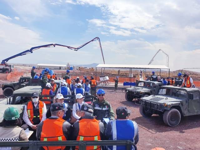 El general Gustavo Vallejo Suárez, director de las obras del AIFA, acompañó a los funcionarios en un recorrido por el predio en el que, les dijo, hay un avance del 4.2 por ciento y en el que se pasará ya a una nueva etapa de desarrollo, en la que se acelerará el uso de los materiales que se están moviendo desde lo que fue el NAIM, en Texcoco.