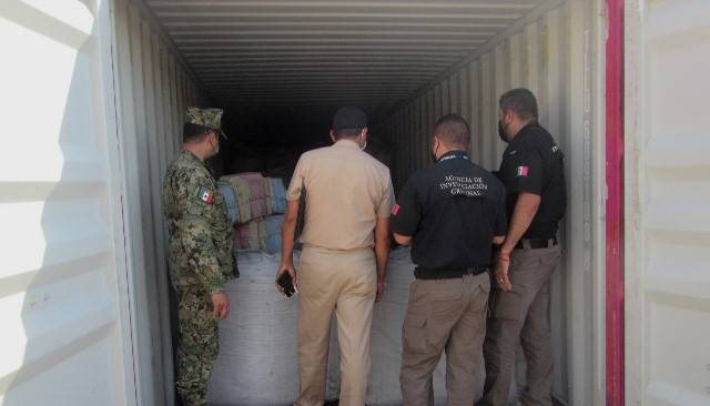 De inmediato, el personal naval con apoyo de binomios caninos, efectuaron una revisión arrojando resultados positivos a estupefacientes, procediendo a realizar coordinaciones con la Fiscalía General de la República (FGR) para la toma y análisis de muestras, así como el pesaje de la presunta carga ilícita, para la integración de la carpeta de investigación correspondiente.