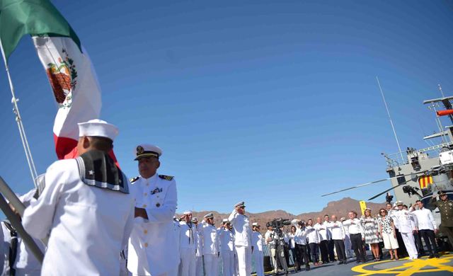 Coincidiendo con los actos conmemorativos del Día de la Armada de México, el Presidente de la República y Comandante Supremo de la Fuerzas Armadas, Enrique Peña Nieto, abanderó el buque de aprovisionamiento logístico ARM (Armada de República de México) Isla María Madre (BAL-11) y la patrulla oceánica ARM Chiapas (PO-165). También se presentó en el acto un campamento móvil helitransportable de vanguardia destinado al auxilio a la población en casos de desastre y/o para proporcionar ayuda humanitaria en general. La ceremonia tuvo lugar en la base del SEMAR (Secretaria de Marina) de Guaymas, en el Estado de Sonora, en la costa del Pacífico.