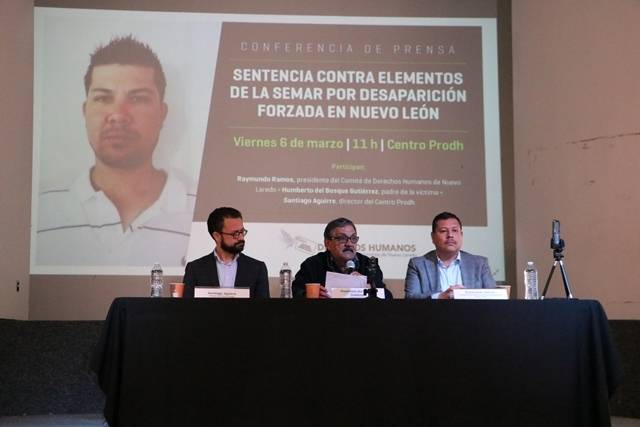 Raymundo Ramos, presidente del Comité de Derechos Humanos de Nuevo Laredo, Tamaulipas, (CDHNL), Santiago Aguirre, director del Centro de Promoción y Defensa de los Derechos Humanos “Miguel Agustín Pro”, y Humberto del Bosque, padre de Armando Humberto, dieron a conocer en conferencia de prensa la histórica sentencia dictada el pasado 28 de febrero en contra de personal naval por el delito de desaparición forzada.