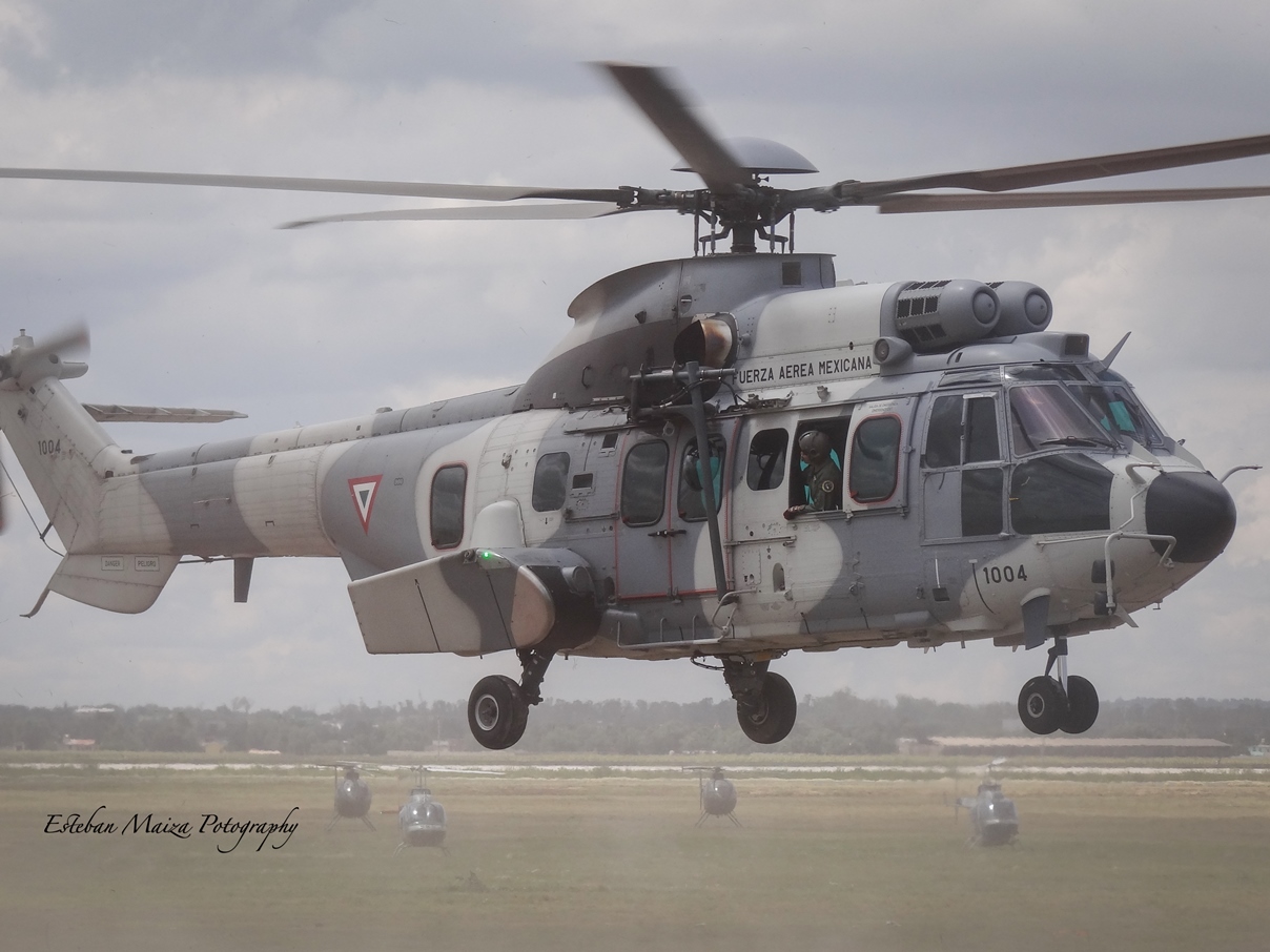 Otro helicóptero Cougar de la flota de la Fuerza Aérea Mexicana, en este caso el matriculado 1004. (foto: Esteban Maiza)