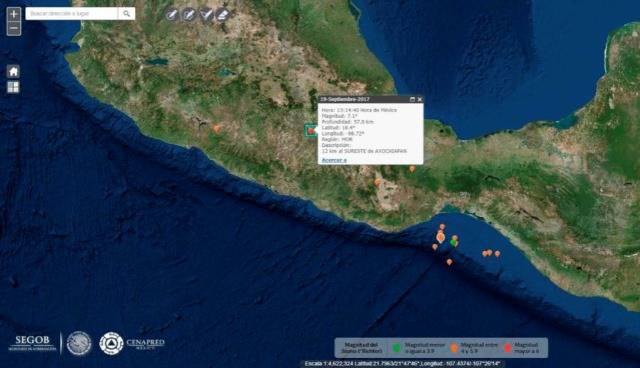 El despliegue militar y naval abarca la Ciudad de México y los estados de Puebla, Morelos, Guerrero, Estado de México, Oaxaca, Tlaxcala y Veracruz. El documento señala que el número de muertos hasta las 06:30 horas del 22 de septiembre era de 288 personas. De esa cifra, 150 han fallecido en la Ciudad de México, 73 en Morelos, 45 en Puebla, 13 en el Estado de México, 6 en Guerrero y 1 en Oaxaca. El documento de la CNPC señala que hay 433 especialistas en rescate y estructuras enviados por los gobiernos de 12 países para apoyar en las labores de auxilio en la capital de México.