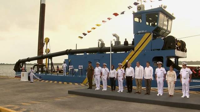 La ceremonia de abanderamiento de las dragas “Montebello” ADR-18 y “Morelos” ADR-19, construidas por las firmas holandesas Damen Shipyards y Royal IHC, fue encabezada por el presidente Andrés Manuel López Obrador, por el almirante Raúl Ojeda Durán, secretario de Marina, y por los gobernadores de Tabasco y Chiapas, Adán Augusto López Hernández y Rutilio Escandón Cadenas, respectivamente, así como por otros funcionarios federales y estatales.