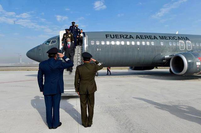 Para inaugurar las nuevas instalaciones de la BAM-1 en el Día de la Fuerza Aérea Mexicana (FAM), el mandatario voló desde el Aeropuerto Internacional de la Ciudad de México (AICM) en un Boeing 737-800 de la FAM, acompañado de su gabinete de seguridad, de gobernadores de tres estados aledaños e invitados especiales, en un acto difundido como la inauguración de una parte del AIFA, asegurando incluso que desde hoy podrán aterrizar aeronaves civiles de líneas aéreas comerciales.