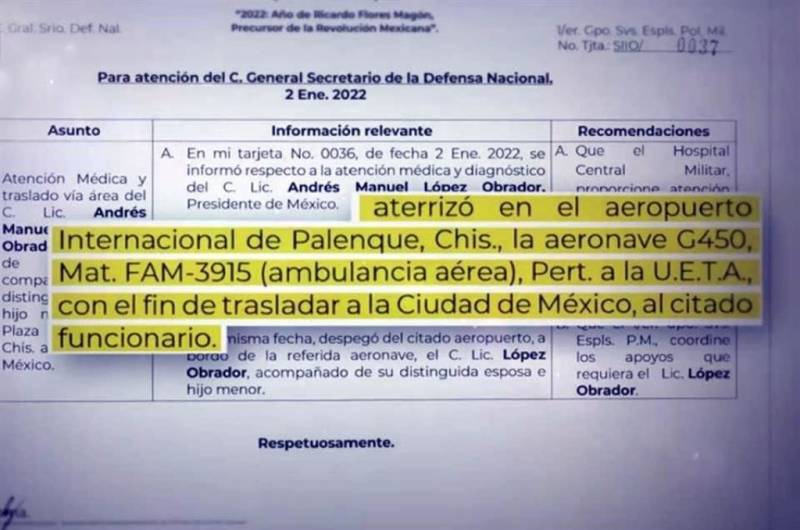 Esto ocurrió el 2 de enero de este año, cuando el presidente estaba en su casa de Palenque y fue llevado a una base para de ahí ser movilizado en ambulancia aérea a la Ciudad de México y luego llevado en un helicóptero al HCM.