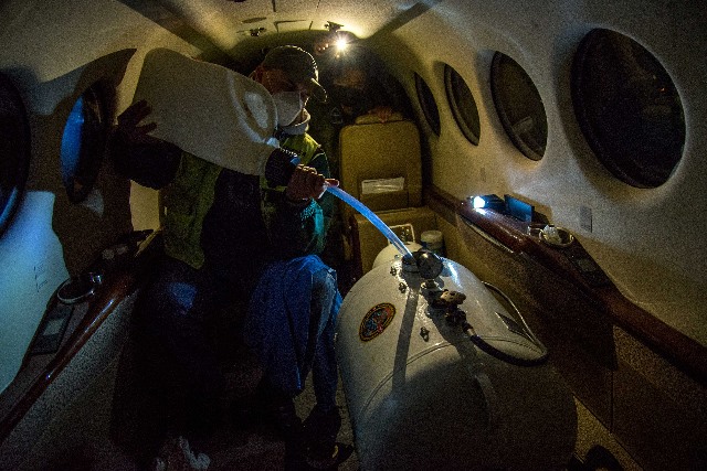 Fotografías: Carga del avión King Air 350i para extinción de incendios de la Fuerza Aérea mexicana.