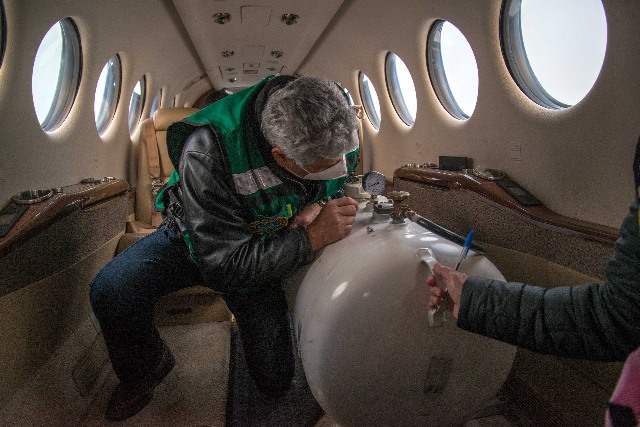 En la modificación de la aeronave participó un grupo de ocho especialistas –mecánicos e ingenieros– de la FAM, quienes recibieron el tanque de 100 litros de capacidad aportado por la Secretaría de Agricultura y Desarrollo Rural (SADER) para colocarlo en el interior del aparato al que le fueron retirados los asientos de los pasajeros.