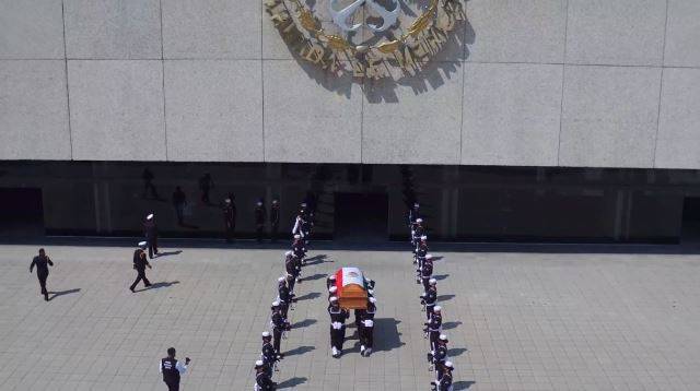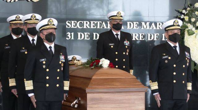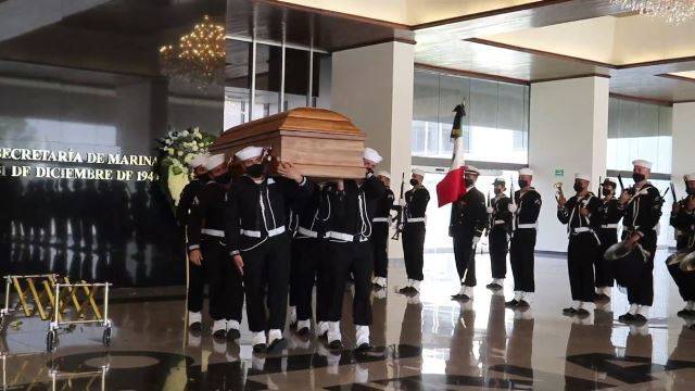 La familia del Almirante Saynez presenció el despliegue naval en el que la llegada del féretro con sus restos fue vigilada por una compañía de marinería y una banda de guerra. El féretro fue depositado en la entrada principal de la secretaría, en donde fue cubierto con la bandera nacional y con flores rojas y blancas. La ceremonia se compuso acorde a lo estipulado en nuestra legislación interna por unas palabras de agradecimiento a cargo de un familiar, lectura del currículum vitae, una guardia de honor por sus familiares y otra a cargo de los altos funcionarios de Marina, honores al pito marinero y entrega de la insignia de mando, señaló la SEMAR.