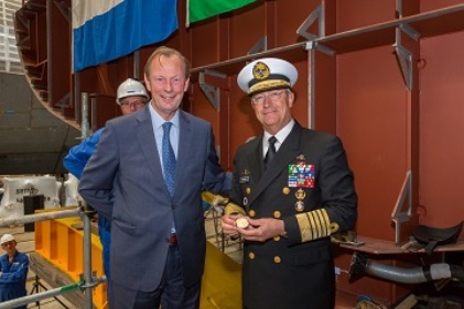 Los astilleros holandeses Damen, de la empresa DSNS, fueron escenario de la puesta simbólica de la quilla y una moneda en ésta del nuevo buque que dotará a la Armada de México en una ceremonia presidida por el actual el secretario de Marina, el almirante Vidal Francisco Soberón Sanz. El máximo responsable de la Secretaria de Marina (SEMAR) en el curso de un viaje de trabajo a los Países Bajos ha acudido a los astilleros de la empresa Damen Schelde Naval Shipbuilding (DSNS), en la ciudad de Flesinga.