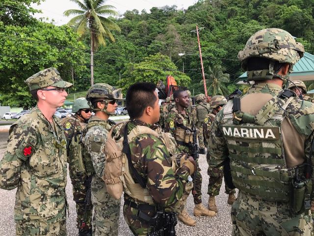 Con una dotación de 123 elementos, un helicóptero embarcado y una sección de Infantería, la Marina de México inició su participación en los ejercicios multinacionales Tradewinds 2018, frente a las costas de las Bahamas. En la edición número 34 de este ejercicio, organizado en dos fases por el Comando Sur de los Estados Unidos, el personal de la Marina de México se une a las diferentes prácticas de otras 21 fuerzas navales del Caribe, de Sudamérica y de potencias europeas invitadas.