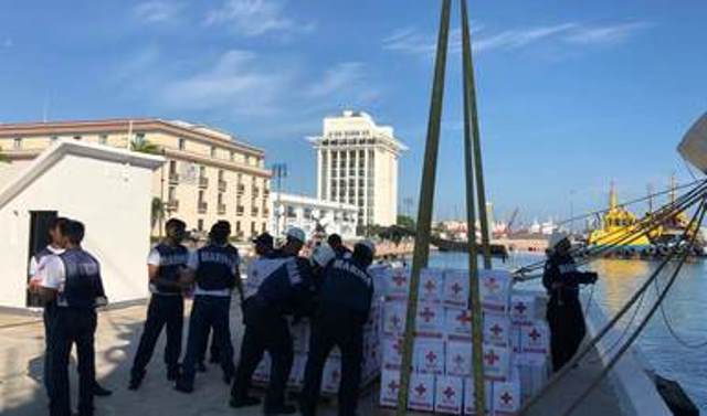 La secretaría señala en un comunicado que el apoyo humanitario se da en el marco de la aplicación del Plan Marina, que contempla ayuda en casos de desastre y asistencia a otras naciones que atraviesan situaciones trágicas ocasionadas por fenómenos meteorológicos. Por ello, debido a la contingencia que el país atraviesa y en respuesta a su solicitud de apoyo, la Secretaría de Relaciones Exteriores, la Coordinación Nacional de Protección Civil y otras dependencias de la Administración Pública Federal, donaron material diverso para las personas afectadas, para lo cual, el Alto Mando de la Armada de México, el Almirante José Rafael Ojeda Durán dispuso su transportación marítima en un buque de la Institución, indica la dependencia.