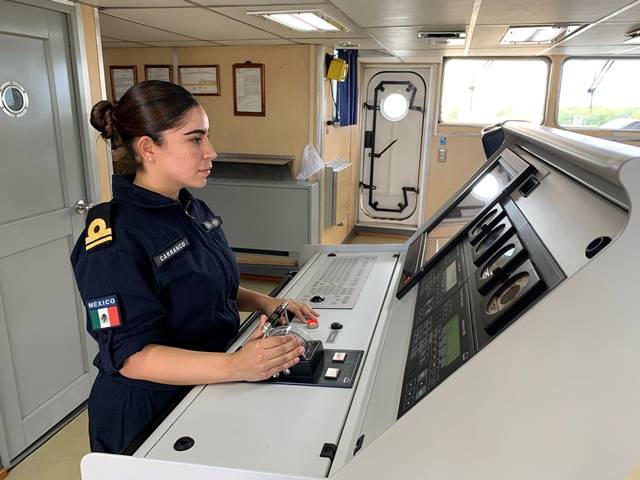 La Oficial Ramírez es la primera mujer en desempeñar el cargo como Jefa de Máquinas en una unidad de superficie de la Armada de México, lo que representa para ella no sólo un sentimiento de orgullo, sino de también de responsabilidad al ser ejemplo y guía de mujeres y hombres de mar, indica la secretaría.