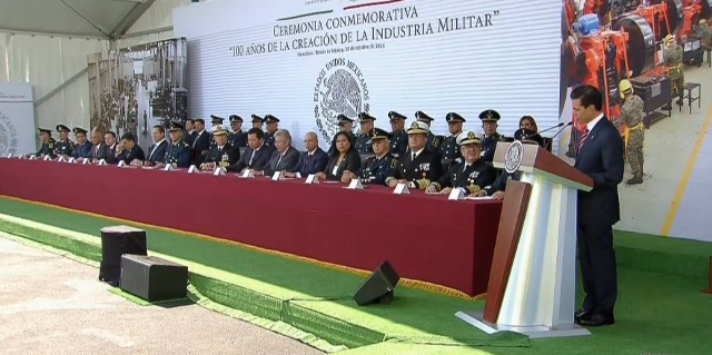 Durante su intervención, Peña Nieto recordó que la actual administración ha fortalecido la industria nacional del país, entre otras cosas, con un incremento del presupuesto entre 2012 y 2016 superior al 36%. Entre los objetivos de estas inversiones está fomentar la innovación, la ciencia y el desarrollo tecnológico que favorezcan el progreso del país. Un ejemplo es el fusil de asalto FX-05 “Xiuhcoatl” de fabricación nacional, que se espera equipe a todas las unidades operativas de las Fuerzas Armadas en 2018. Así mismo se destacaron los trabajos de diseño y construcción de diferentes vehículos blindados todo terreno. Se ha creado la Subdirección General de Industria Aeronáutica Militar, lo que ha permitido desarrollar el proyecto Azteca, destinado al diseño y construcción de un avión de entrenamiento básico (Azteca I).