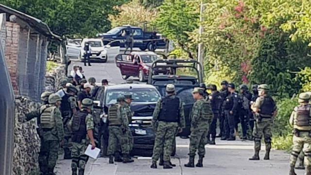 En respuesta a la alerta se envió a un grupo de soldados pertenecientes al 27 Batallón de Infantería ubicado en Iguala, quienes se encontraron de frente con tres camionetas con nombres armados. Los ocupantes de la primera unidad, -una pick up negra- y la tropa del convoy militar se enfrentaron, quedando herido un cabo de Infantería que iba como tirador en la primera camioneta Cheyenne del Ejército. Este elemento miliar fue trasladado a un hospital en la ciudad de Iguala, pero falleció antes de ser atendido por especialistas.